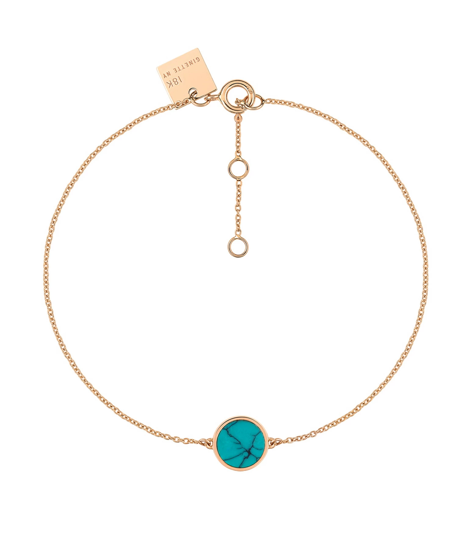 Bracelet sur chaîne en or rose avec une pierre de Turquoise. Fermoir classique avec 3 contre-anneaux et ressort.