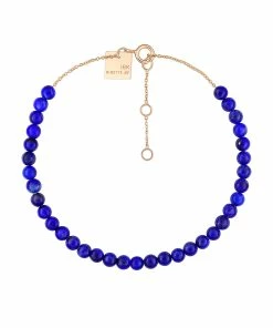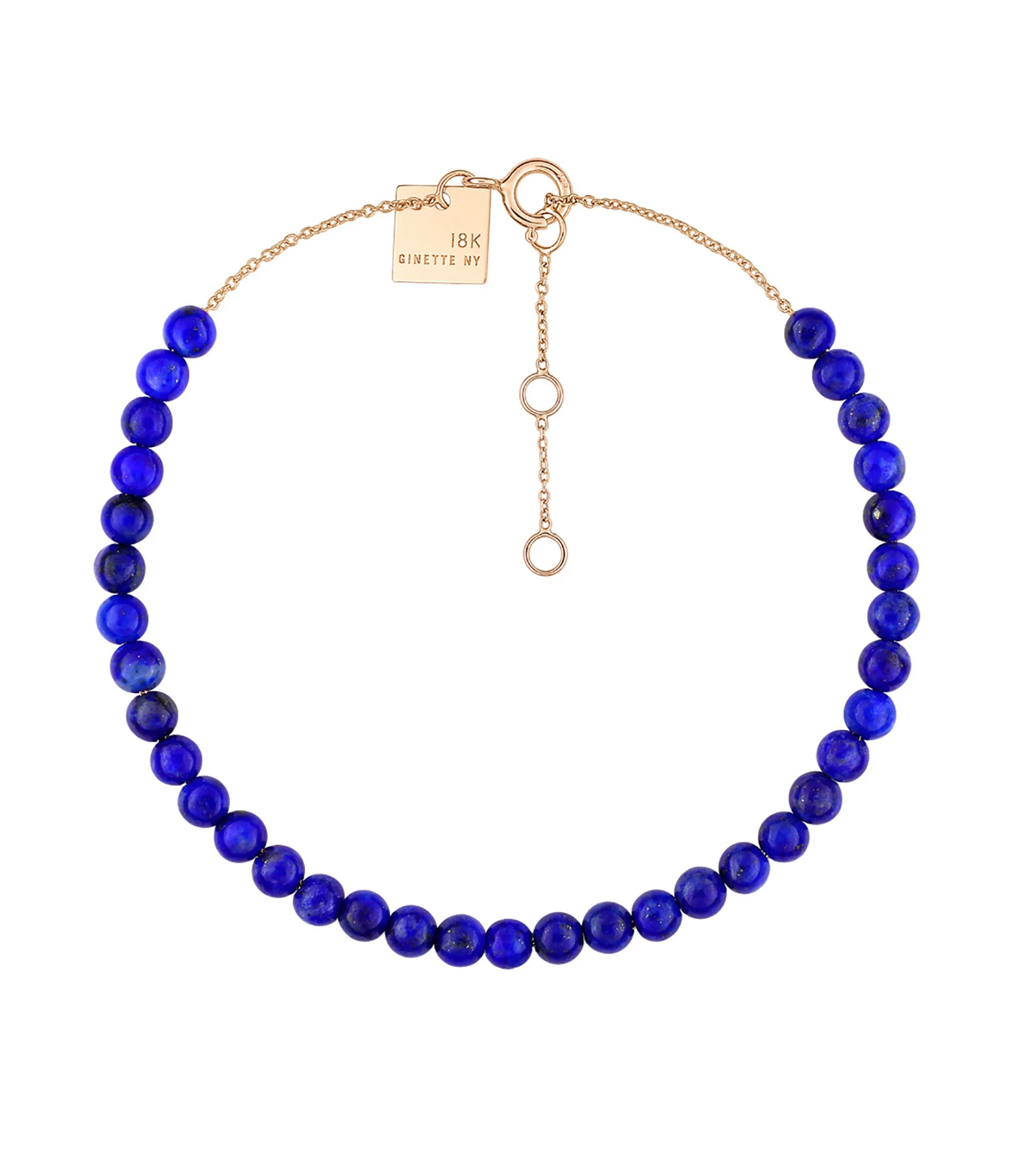 Bracelet sur chaîne en or rose agrémenté de pierres de Lapis. Fermoir classique à ressort avec contre-anneau.