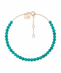 Bracelet sur chaîne en or rose agrémenté de turquoises. Fermoir classique à ressort avec contre-anneau.