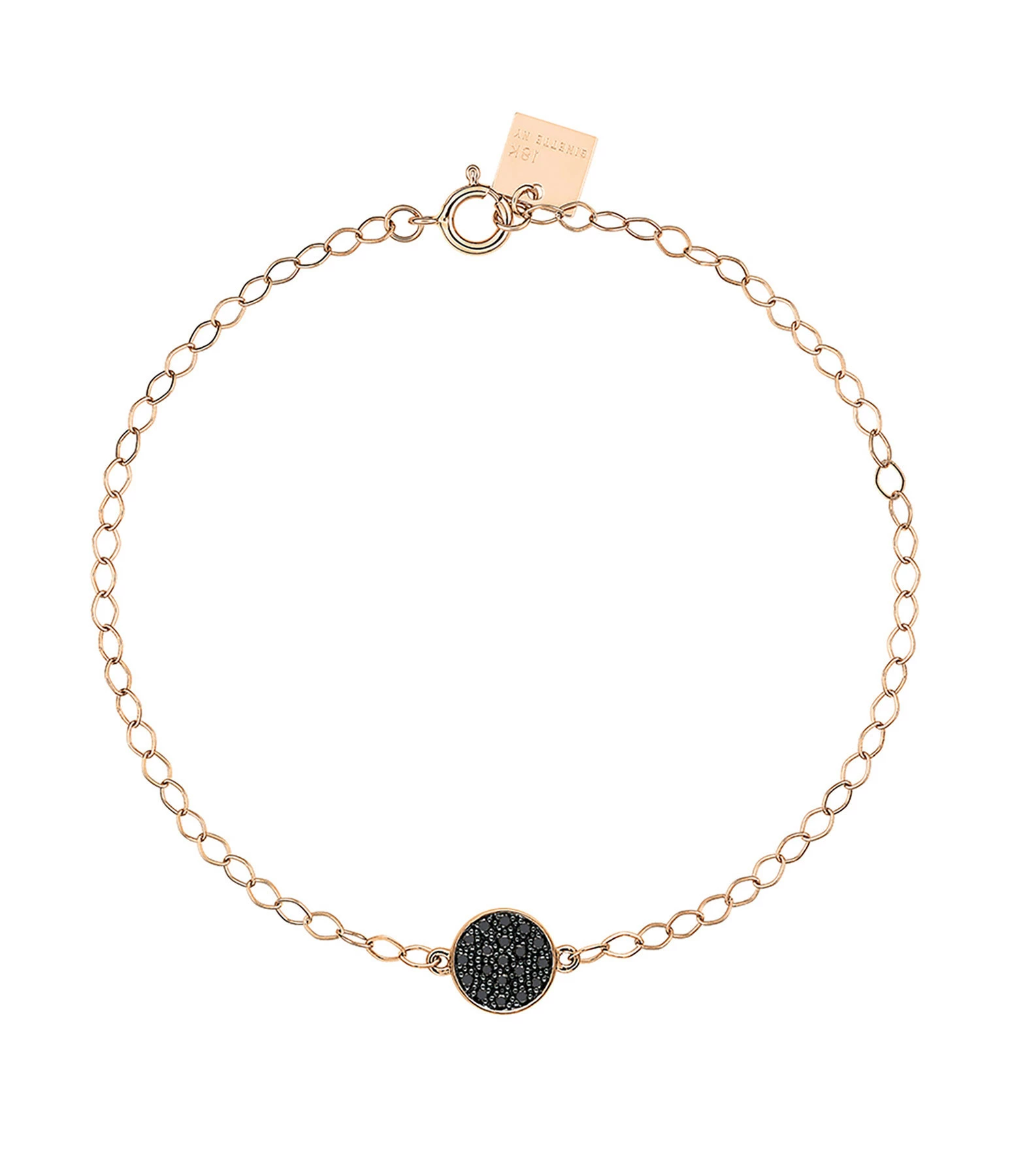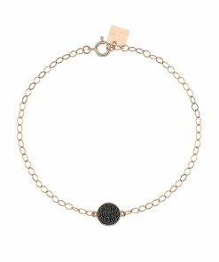 Bracelet sur chaîne en or rose avec pendentif serti de diamants noirs. Fermoir classique à ressort.