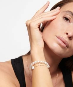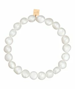 Bracelet élastique en perle de nacre blanche.