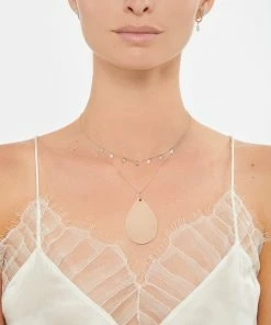 Collier sur chaîne en or rose avec pendentif en forme de goutte. Fermoir classique à ressort.