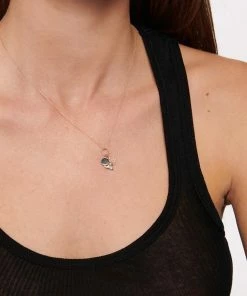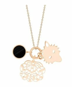 Collier chaîne fine en or rose orné de deux charms iconiques de la maison Ginette NY associé à un disque d’onyx. Fermoir classique à ressort.
