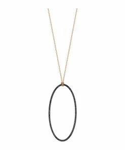 Collier en or rose avec pendentif ovale serti de diamants noirs. Fermoir classique à ressort.