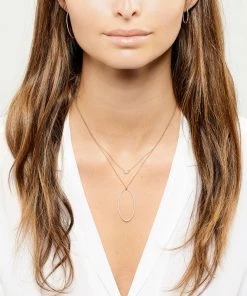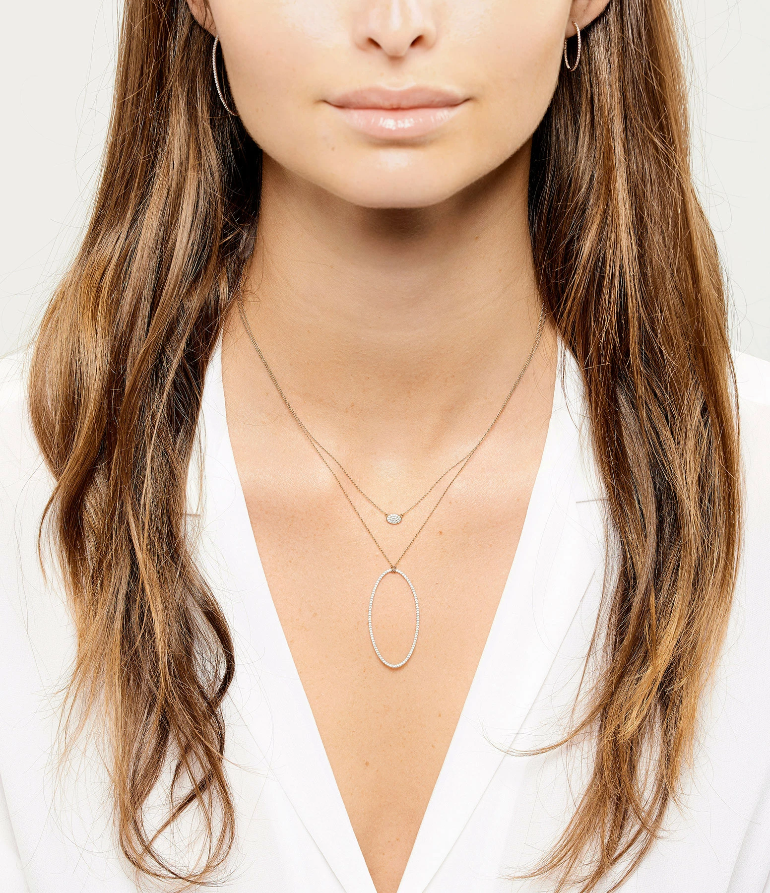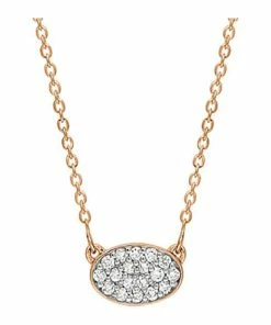 Collier en or rose avec mini pendentif ovale serti de diamants blancs. Fermoir classique à ressort.