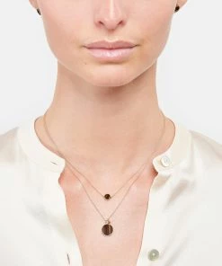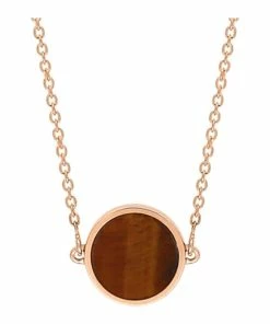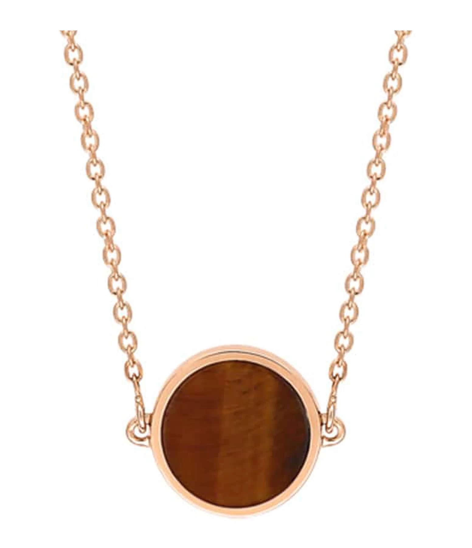 Collier sur chaîne en or rose avec pendentif en Œil de Tigre. Fermoir classique avec contre-anneau et ressort.