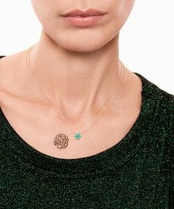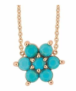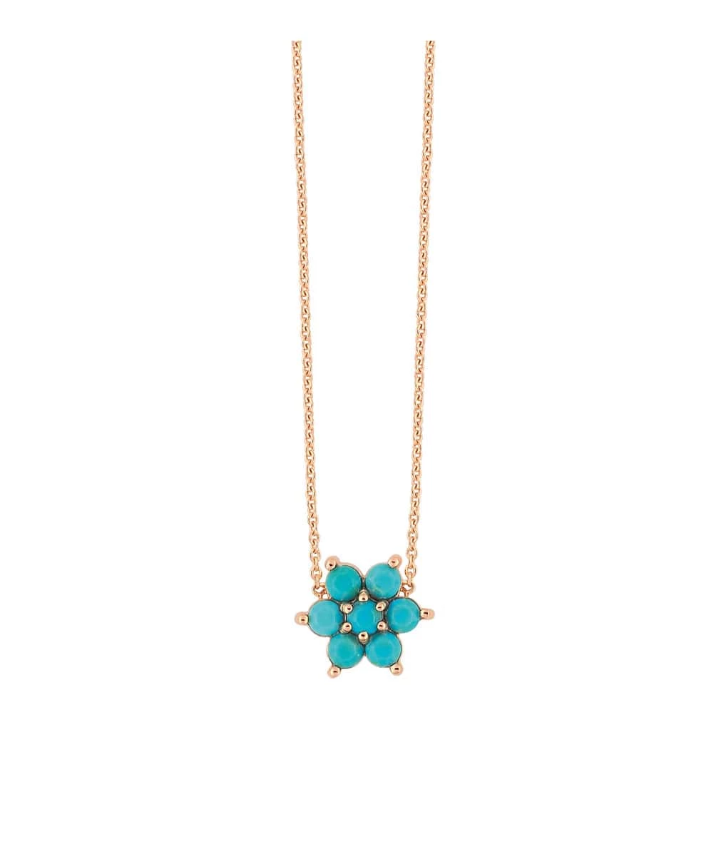 Collier sur chaîne en or rose avec pendentif serti de turquoises. Fermoir classique à ressort.