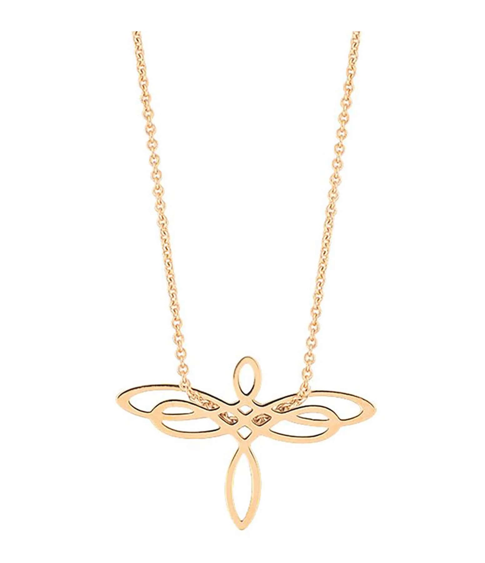 Collier sur une longue chaîne en or rose avec pendentif. Fermoir classique à ressort.
