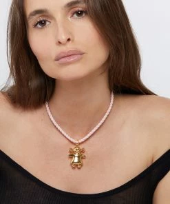 Collier sur chaîne en or rose avec pendentif. Fermoir classique à ressort.