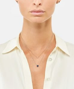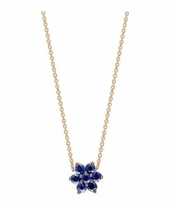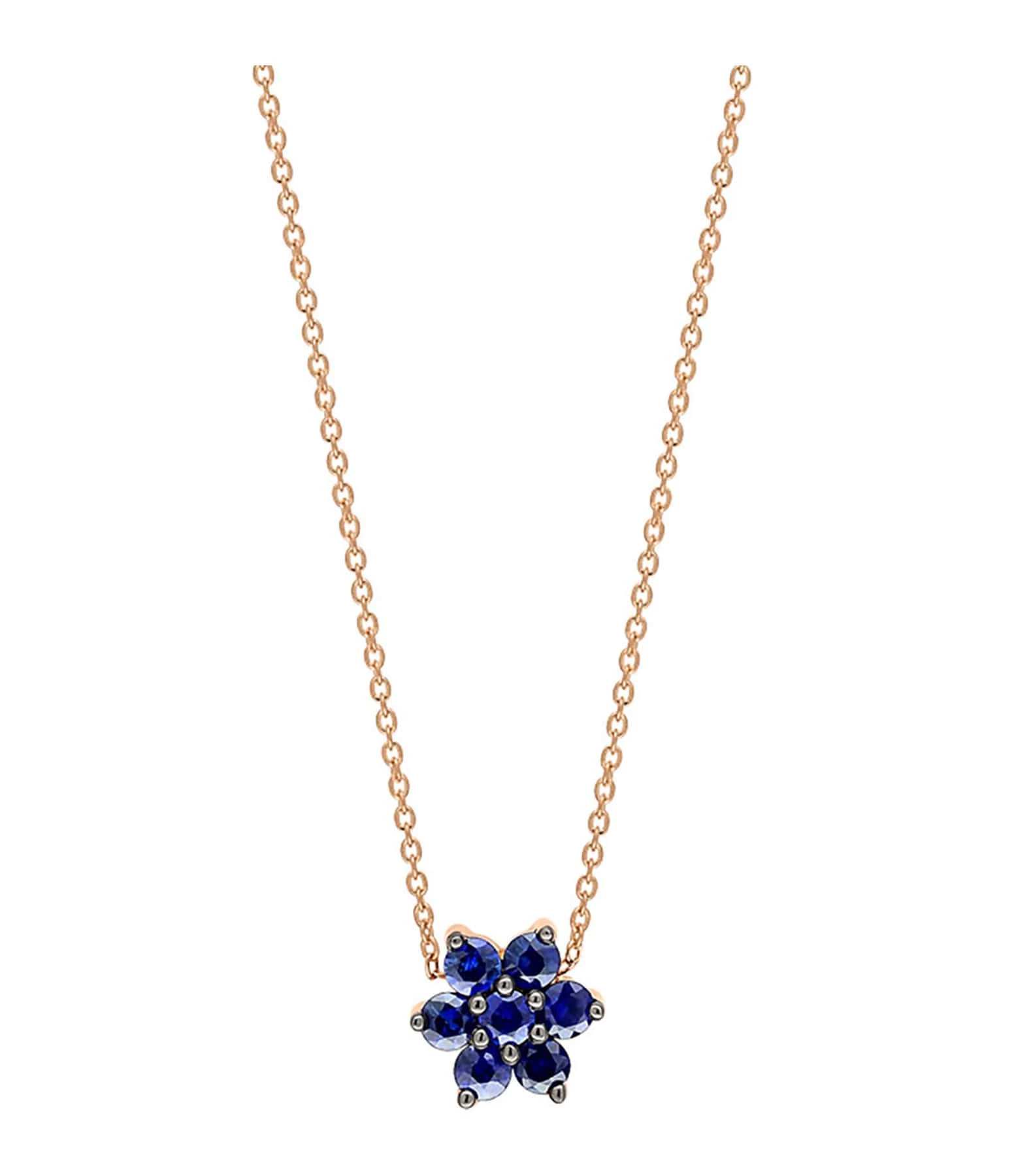 Collier en or rose, pendentif étoile en saphirs. Fermoir à ressort avec contre-anneau.