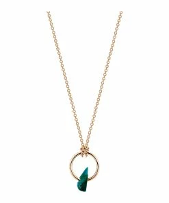 Collier sur chaîne en or rose avec pendentif cercle en or rose et chrysocolle. Fermoir classique à ressort.