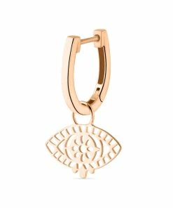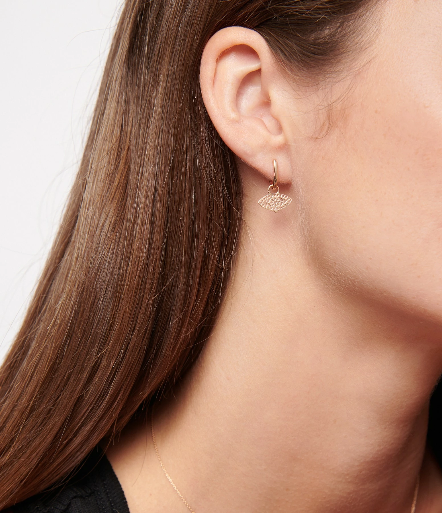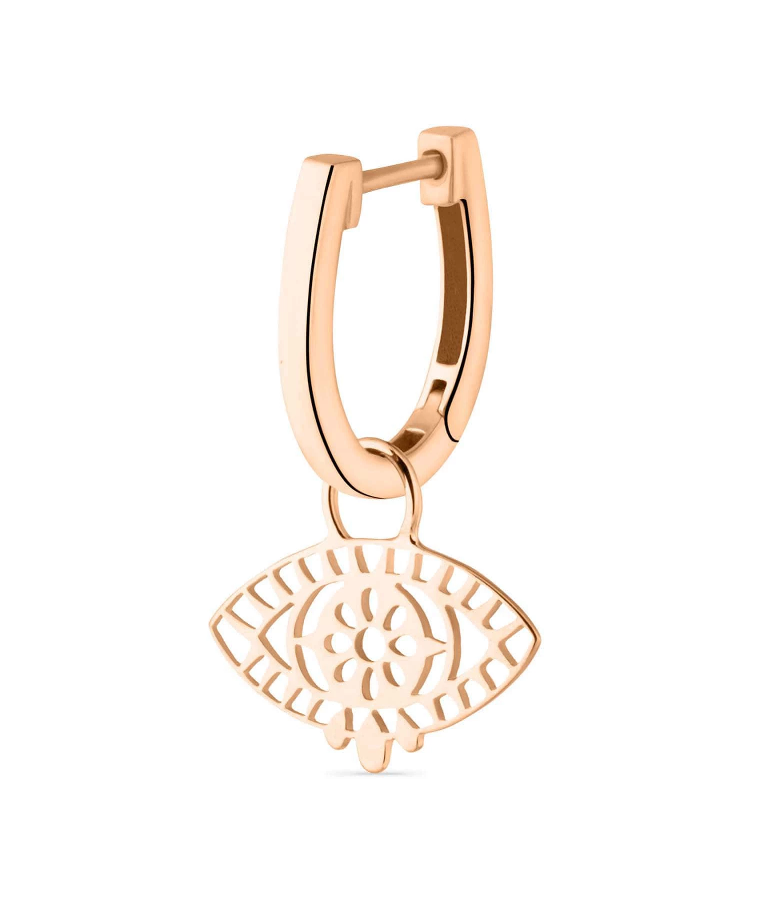Mini créole dormeuse en or rose, avec pendentif Ajna – le chakra du troisième œil – amovible.