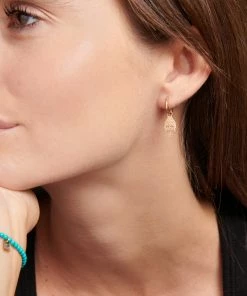 Mini créole dormeuse en or rose, avec pendentif Buddha amovible.