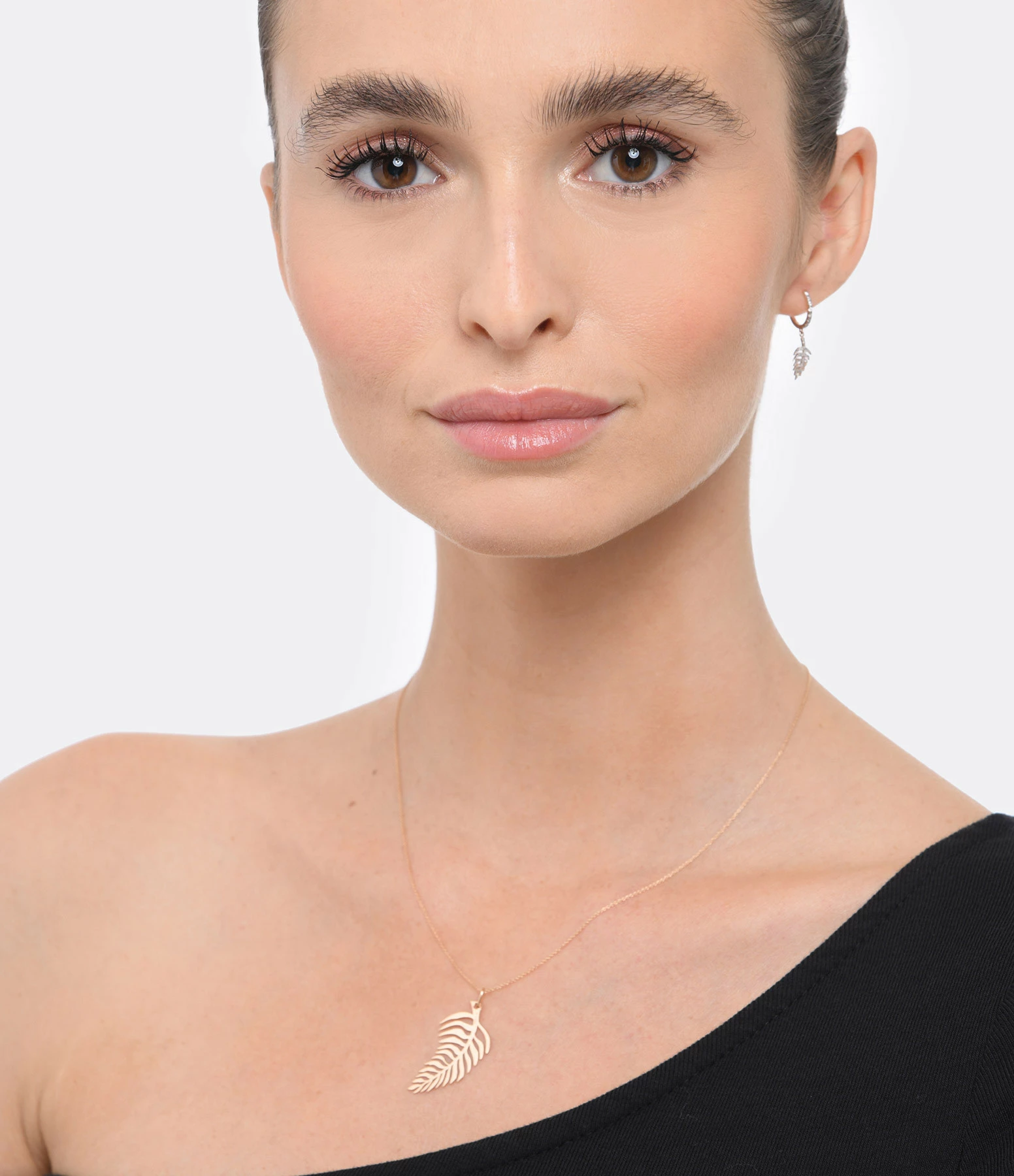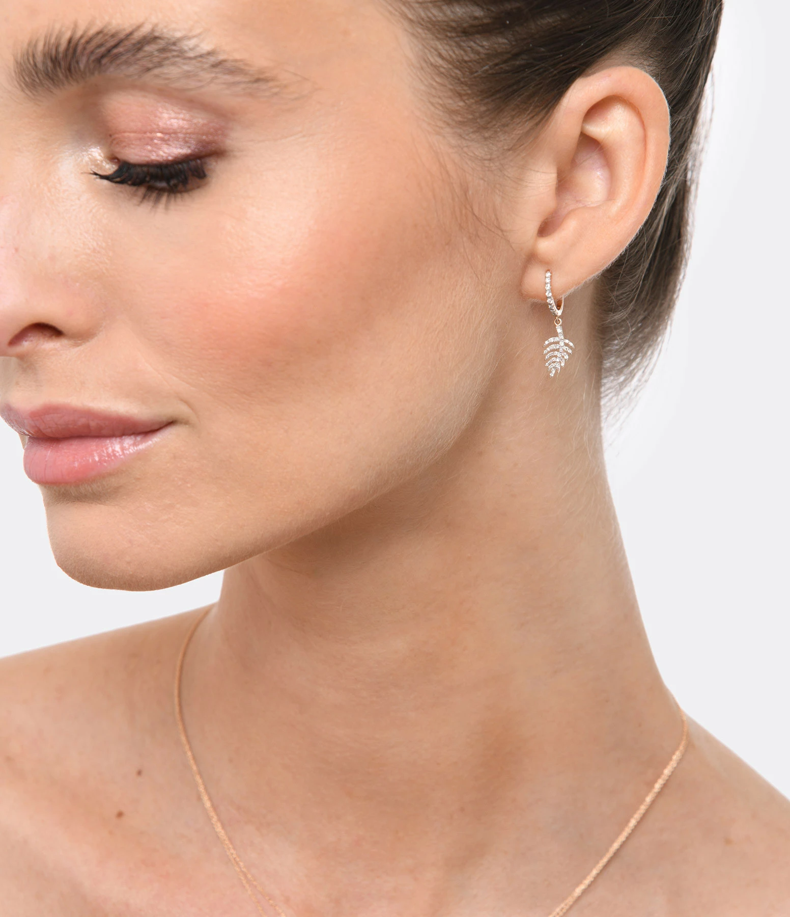 Mini créole en or rose en forme de feuille de palmier, entièrement sertie de diamants. Vendue à l’unité.