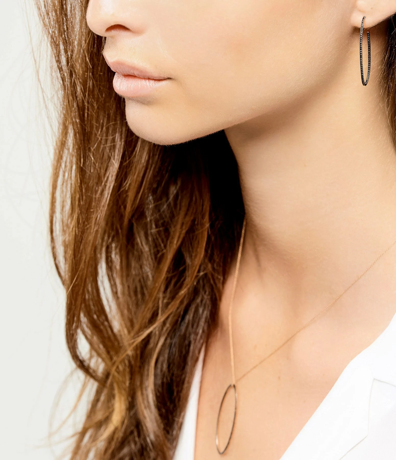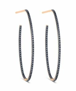 Créoles ovales en or rose serti de diamants noirs.