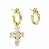 Minis créoles en or rose en forme de feuille de palmier, entièrement serties de diamants. Vendues à la paire.
