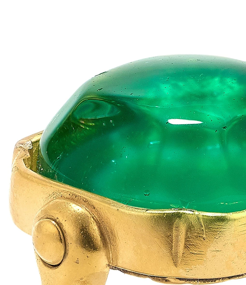 Bague en plaqué or, ornée d’une pierre de cristal de roche teintée à la main en vert émeraude.