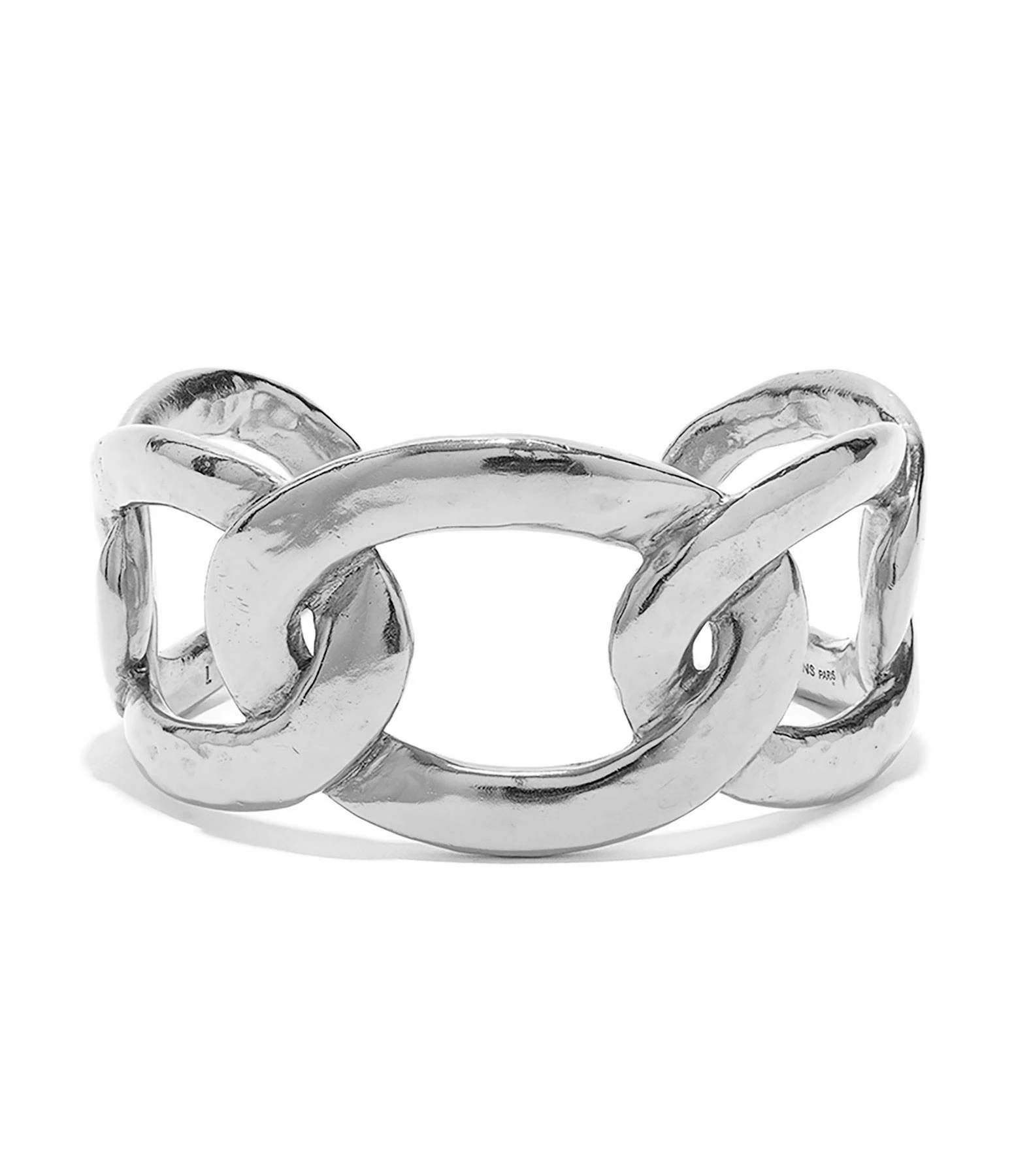 Bracelet en maillons entrelacés et martelés. Se porte collé à la peau.