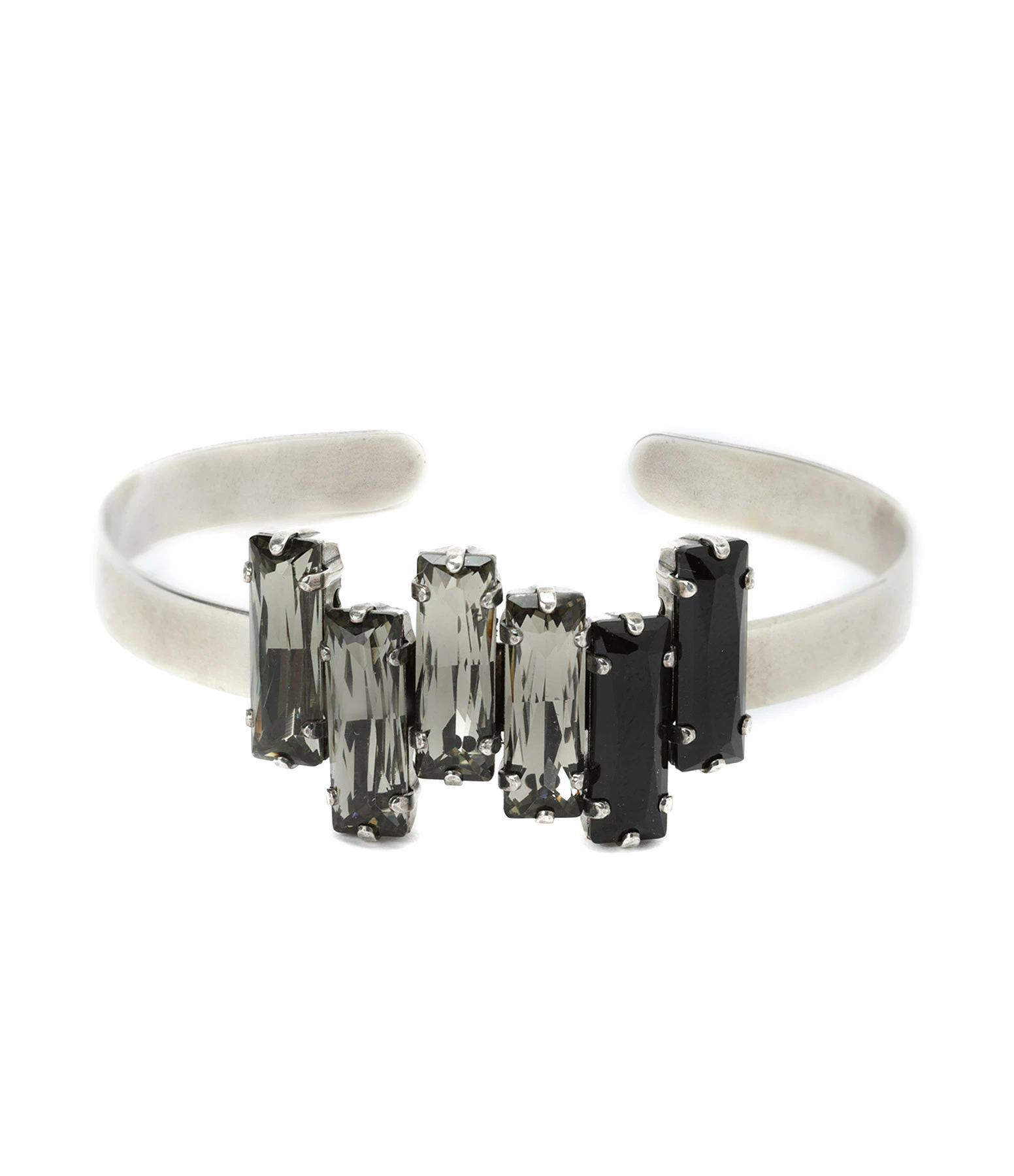 Bracelet jonc argenté surmonté de six cristaux Swarovski® noirs et gris.