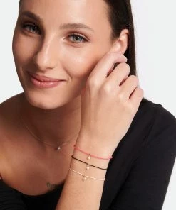 Bracelet sur cordon noir agrémenté d’un diamant monté sur une perle en or. Cordon ajustable par nœud coulissant. Fermoir classique à ressort.