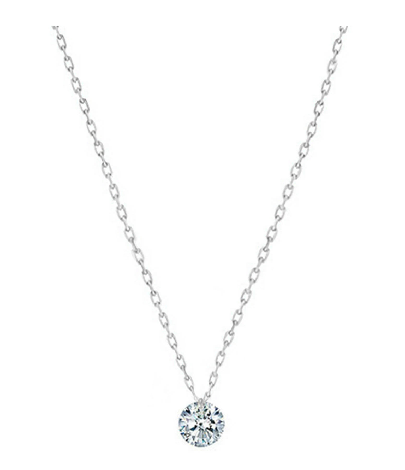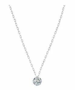 Collier sur chaîne facettée en or blanc agrémenté d’un diamant. Fermoir à ressort avec contre-anneau.