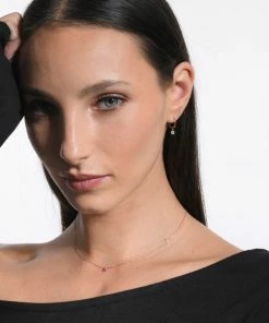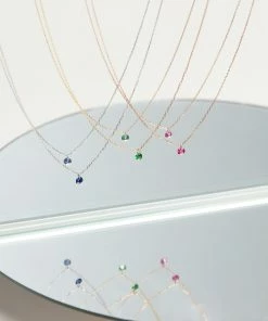 Collier sur chaîne facettée en or rose, agrémenté d’un rubis couleur framboise naturel monté sans serti (pierre percée). Fermoir anneau à ressort avec contre-anneau.
