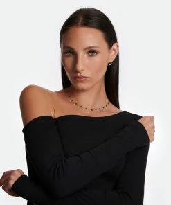Collier sur chaîne facettée en or jaune, agrémenté de 11 pastilles en Onyx Vert naturels montées sans serti (pierre percée). Fermoir anneau à ressort avec contre-anneau.