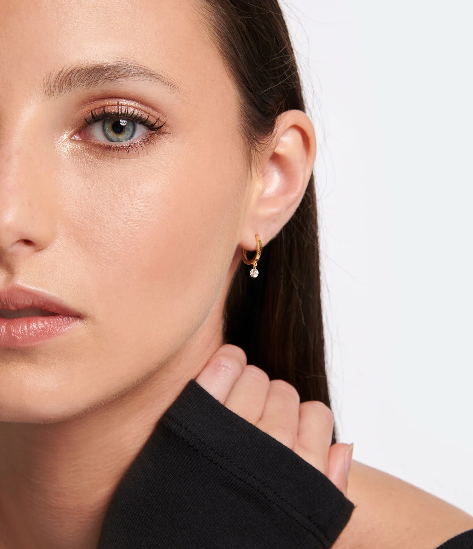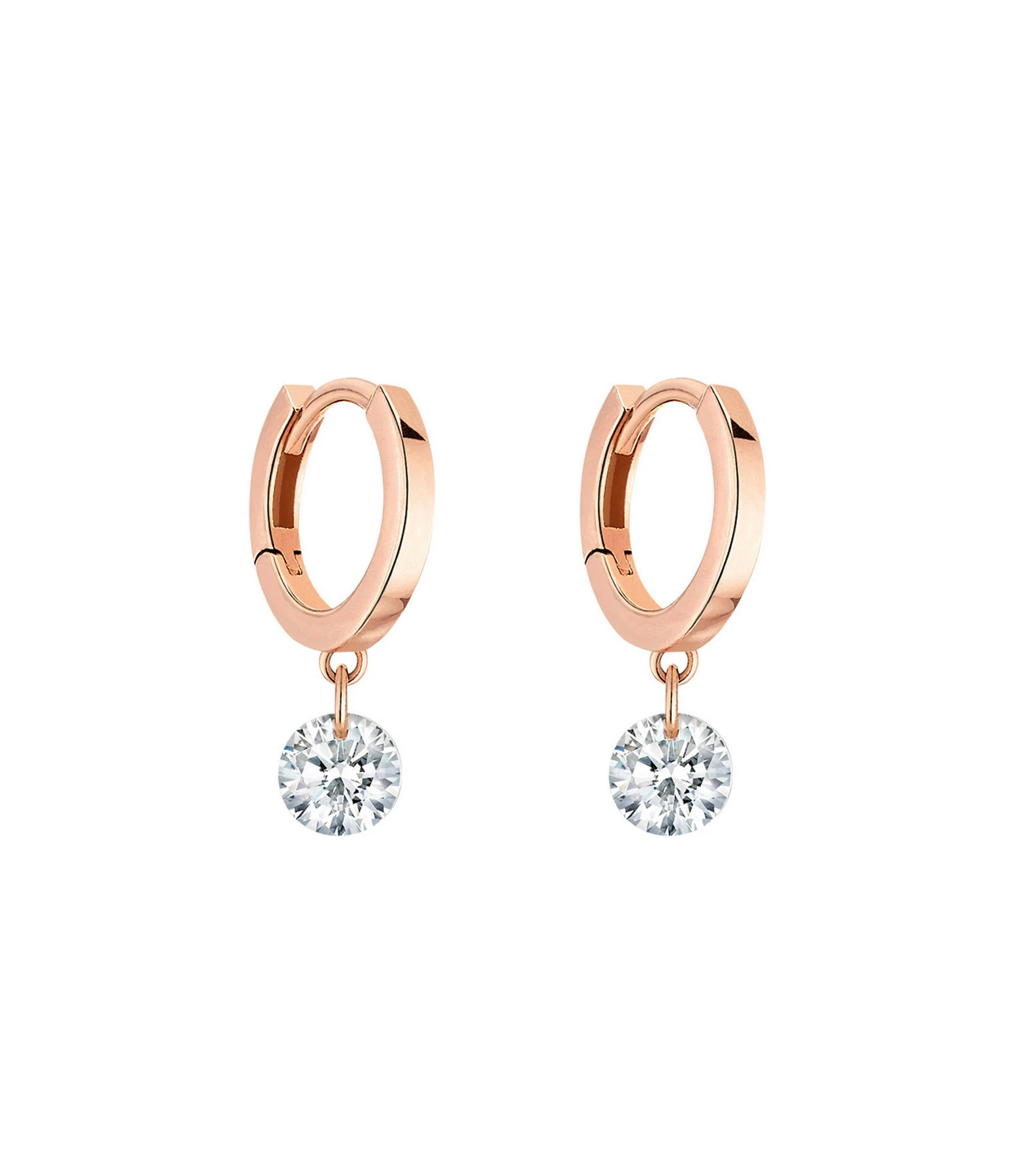 Boucles d’oreilles créoles en or rose agrémentées d’un diamant. Fermoir cliquet.
