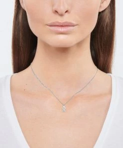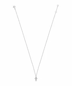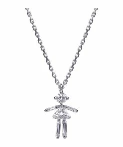 Collier sur chaîne en or blanc avec pendentif petite fille serti de 6 diamants naturels taillés. Fermoir classique à ressort avec contre-anneau.
