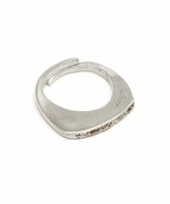 Bague en argent massif avec émail diamanté argenté de paillettes d’or. Ajustable.