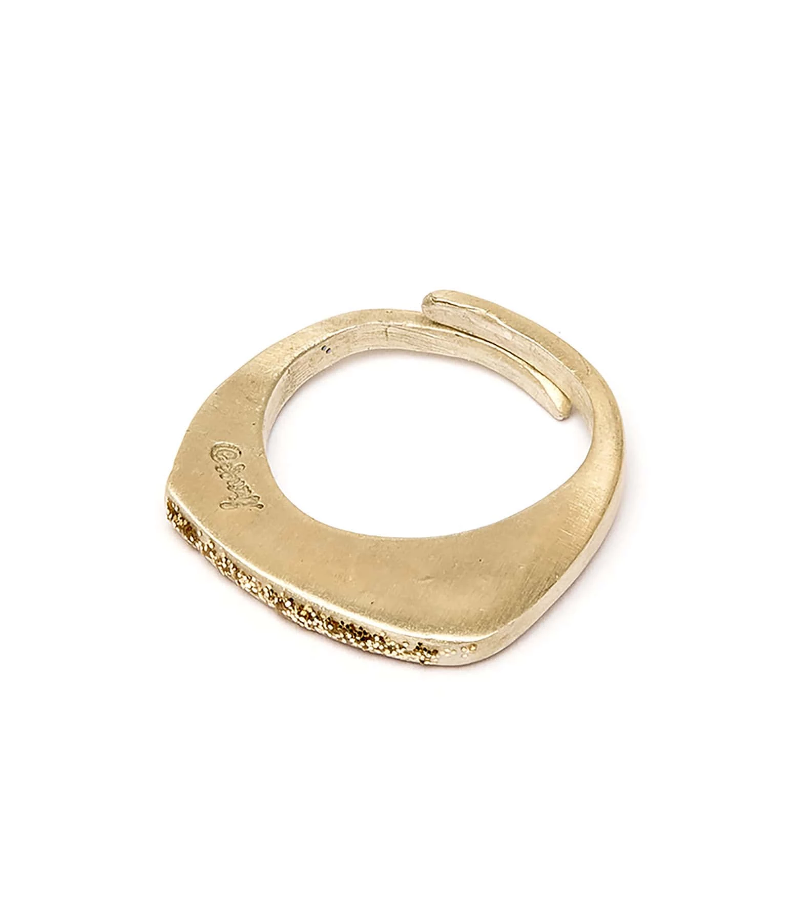 Bague en argent doré avec émail diamanté doré. Ajustable.