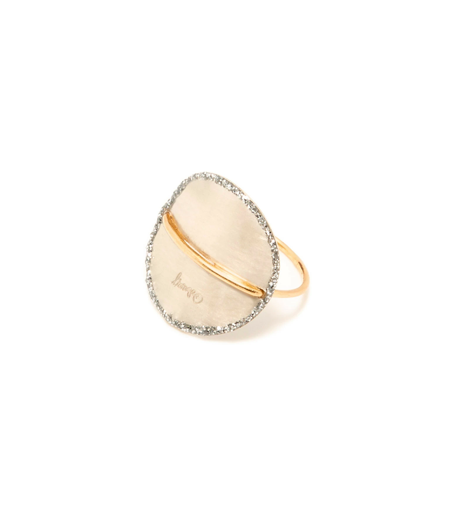 Bague sur fil d’or ornée d’un plateau d’argent blanc serti d’émail diamanté argenté.