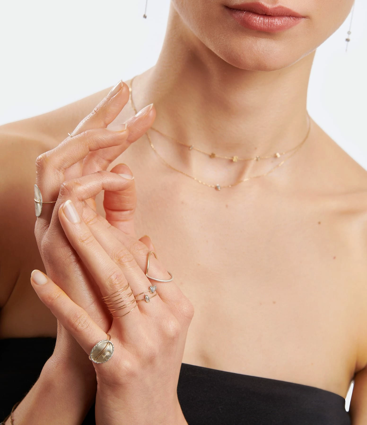 Bague en fil semi-rigide en or 9 carats, avec pépite martelée sertie d’émail diamanté.