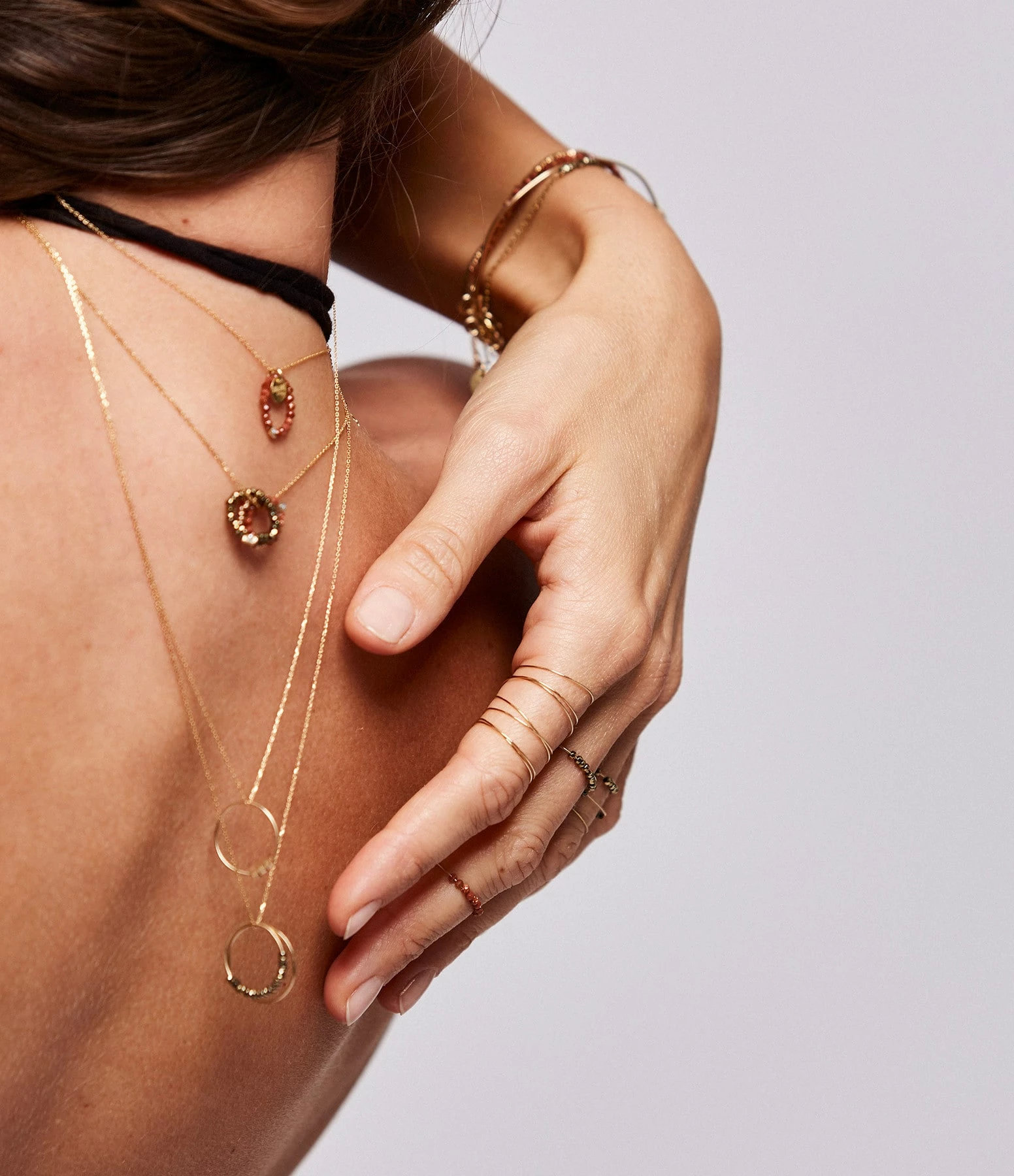 Plus d’infos : Fabriqués artisanalement et avec des pierres naturelles, des nuances de taille, de couleur et de forme peuvent apparaître sur les bijoux.