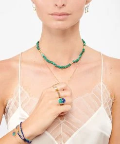 Plus d’infos : Fabriqués artisanalement et avec des pierres naturelles, des nuances de taille, de couleur et de forme peuvent apparaître sur les bijoux.