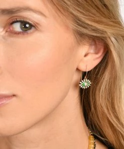 Boucle d’oreille en gold filled avec œil en émail coloré. Attache crochet.