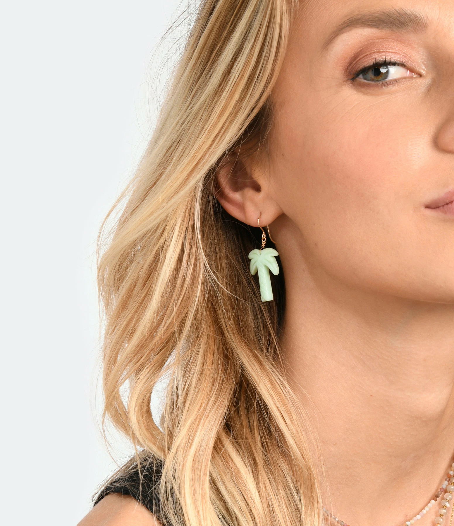 Boucle d’oreille palmier en Chrysoprase. Attache crochet en gold filled.