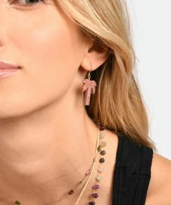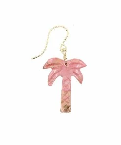 Boucle d’oreille palmier en opale rose. Attache crochet en gold filled.