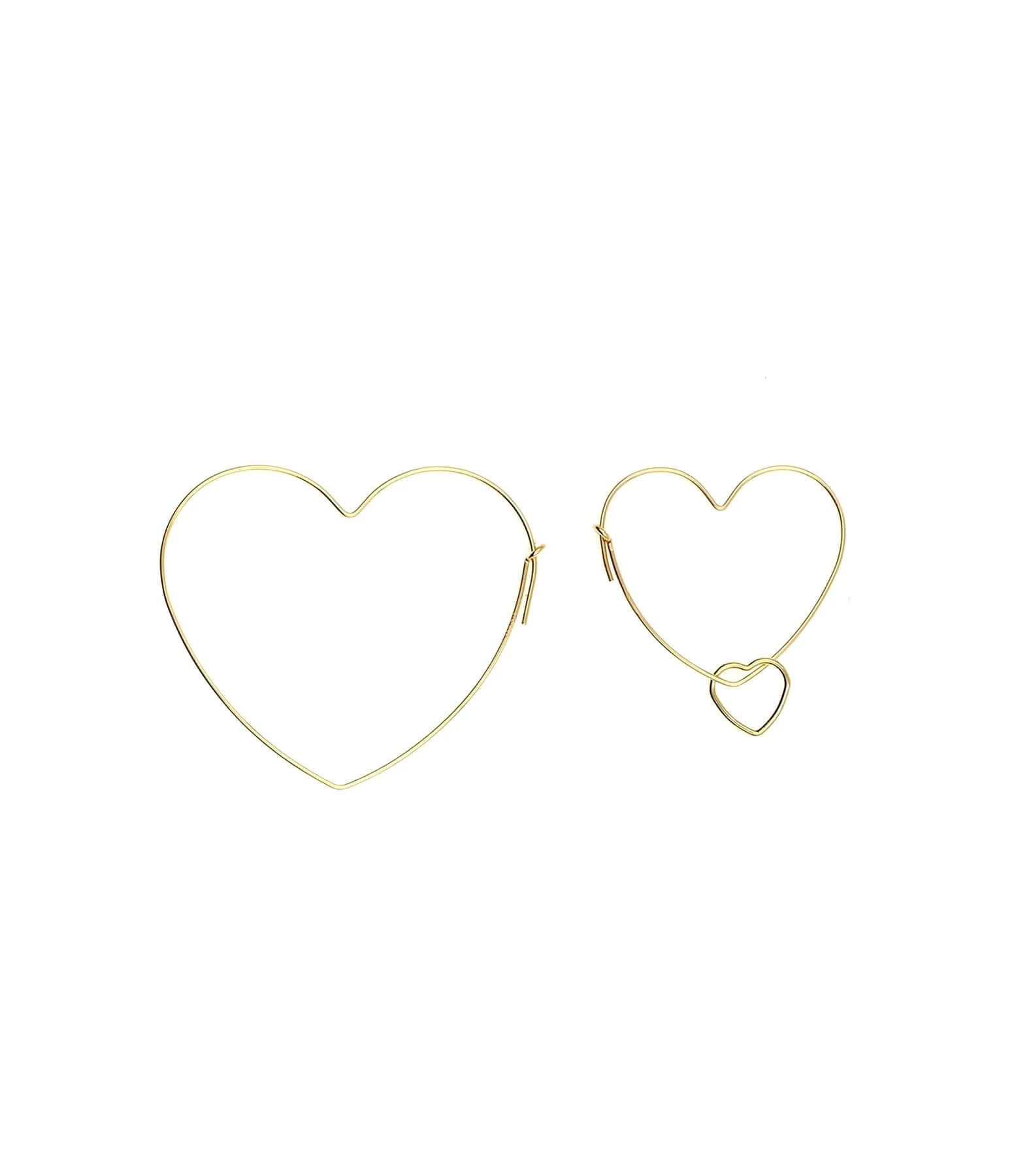 Boucles d’oreilles asymétriques en forme de cœur en laiton doré. Vendues à la paire.