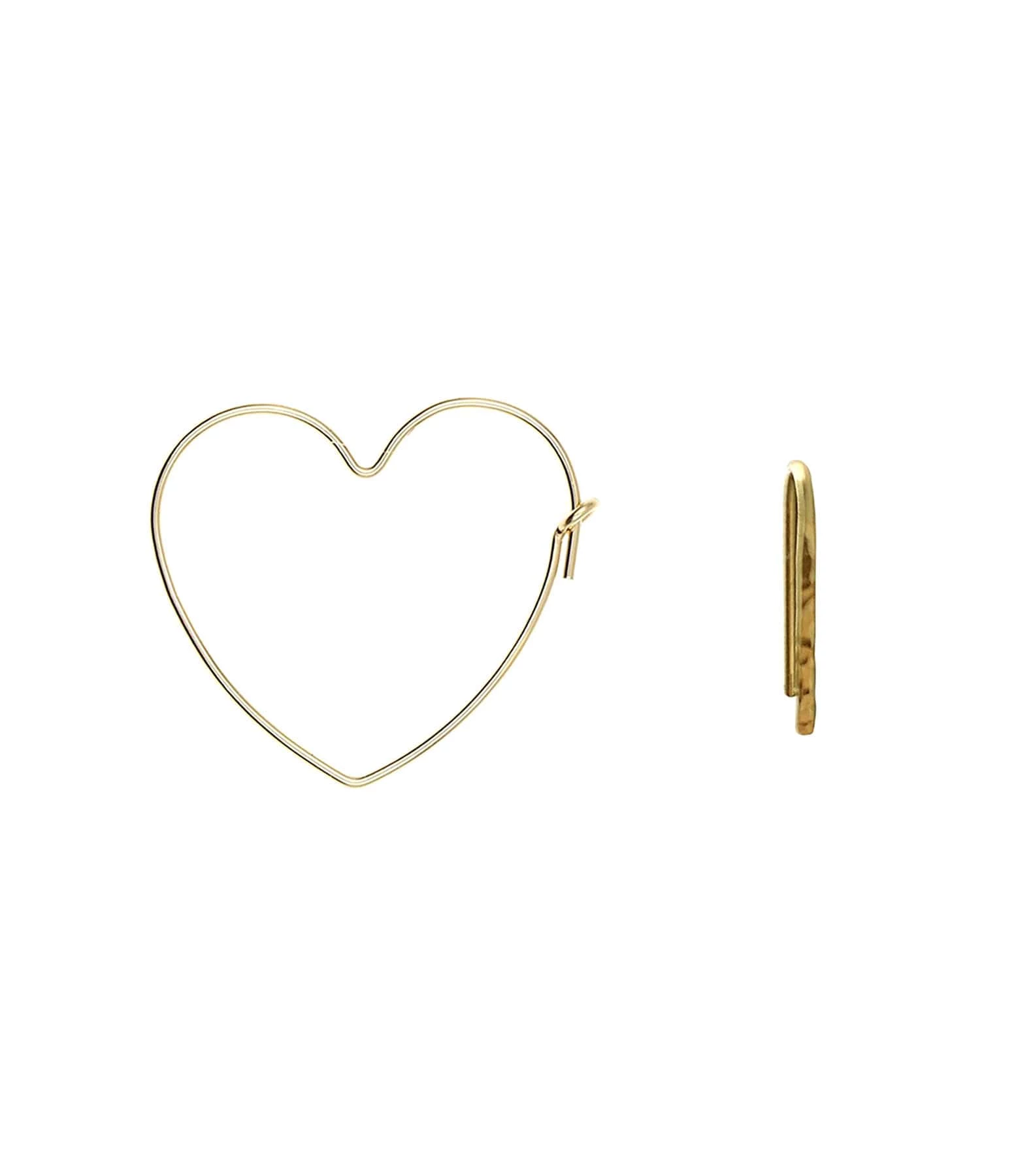 Boucles d’oreilles asymétriques en laiton doré. Une en forme de cœur et une puce. Vendues à la paire.