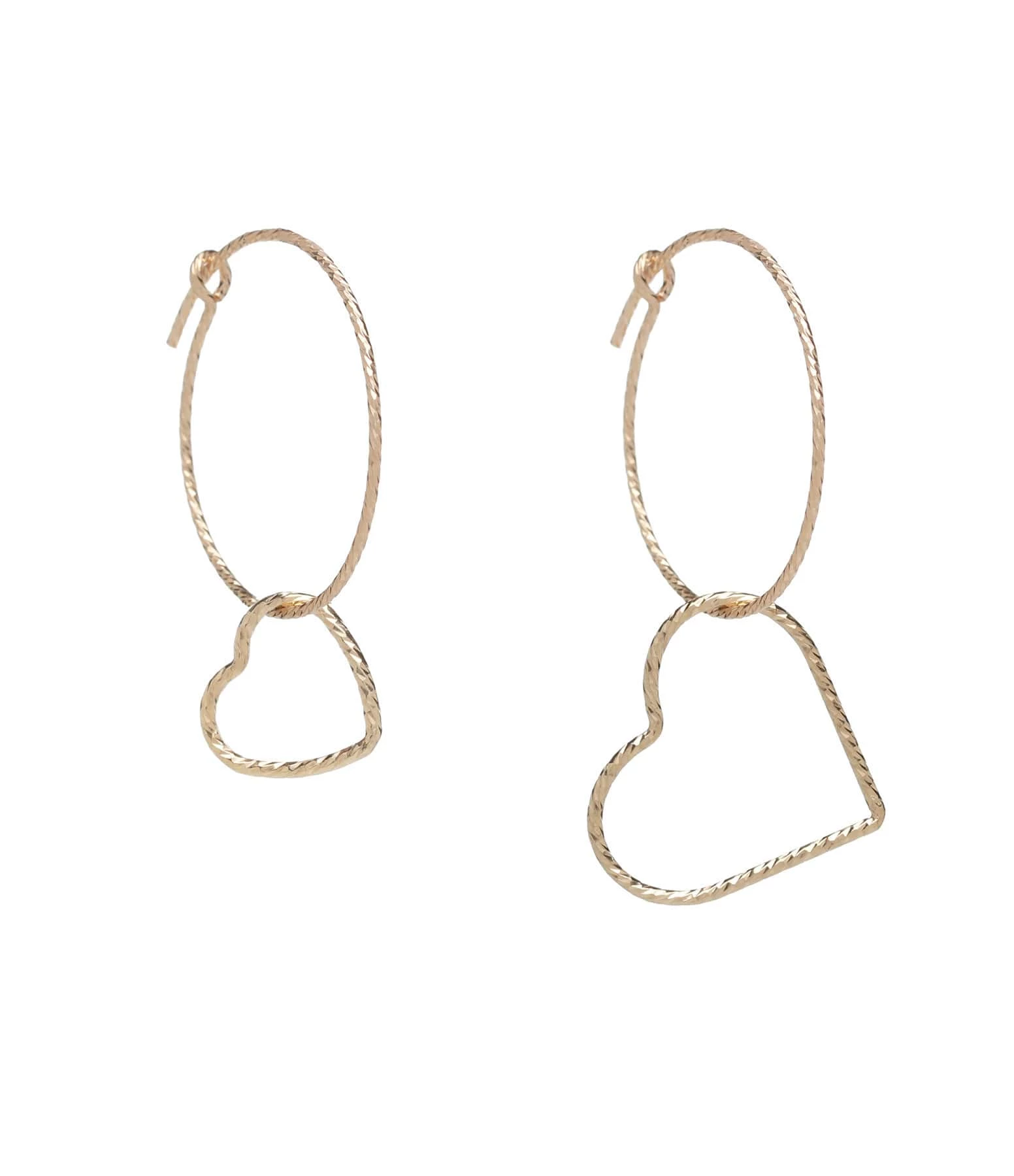 Boucles d’oreilles créoles en gold filled avec pendentif cœur petit et gros.