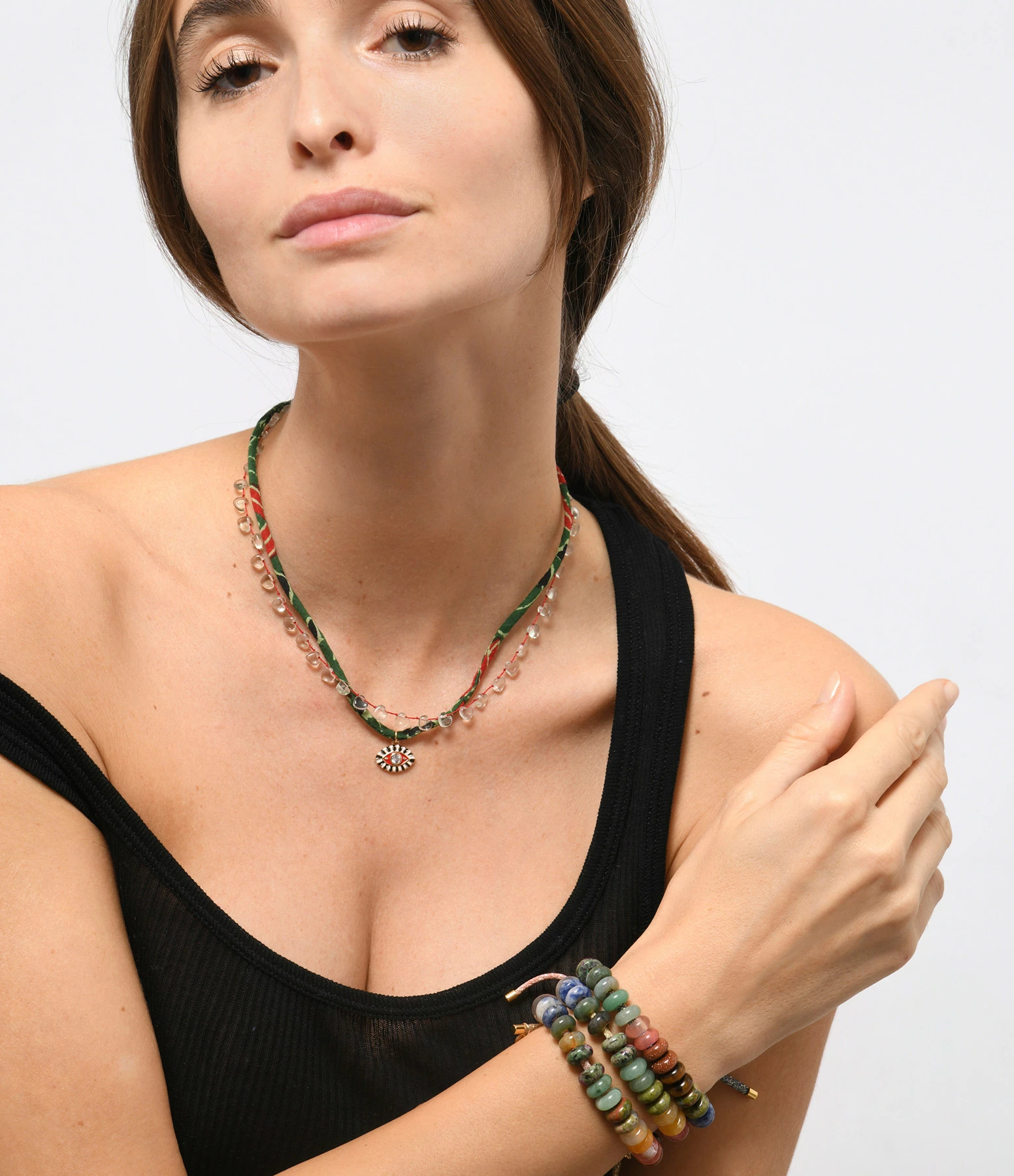 Pierres : Amazonite, Blue Sand, Gold Sand, Jade Multi, Jaspe Picasso, Lapis-lazuli, Malachite, Œil de Tigre, Rubis Zoïsite, Tourmaline Rose.