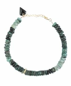 Bracelet en émeraude sur chaîne en argent plaqué or. Fermoir à ressort avec chaînette de réglage.