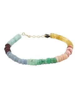Bracelet en rondelles d’Opale multicolore. Fermoir à ressort avec chaîne de réglage en argent doré.