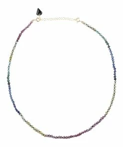 Collier en saphir sur cordon bleu. Fermoir à ressort en argent plaqué or avec chaînette de réglage.