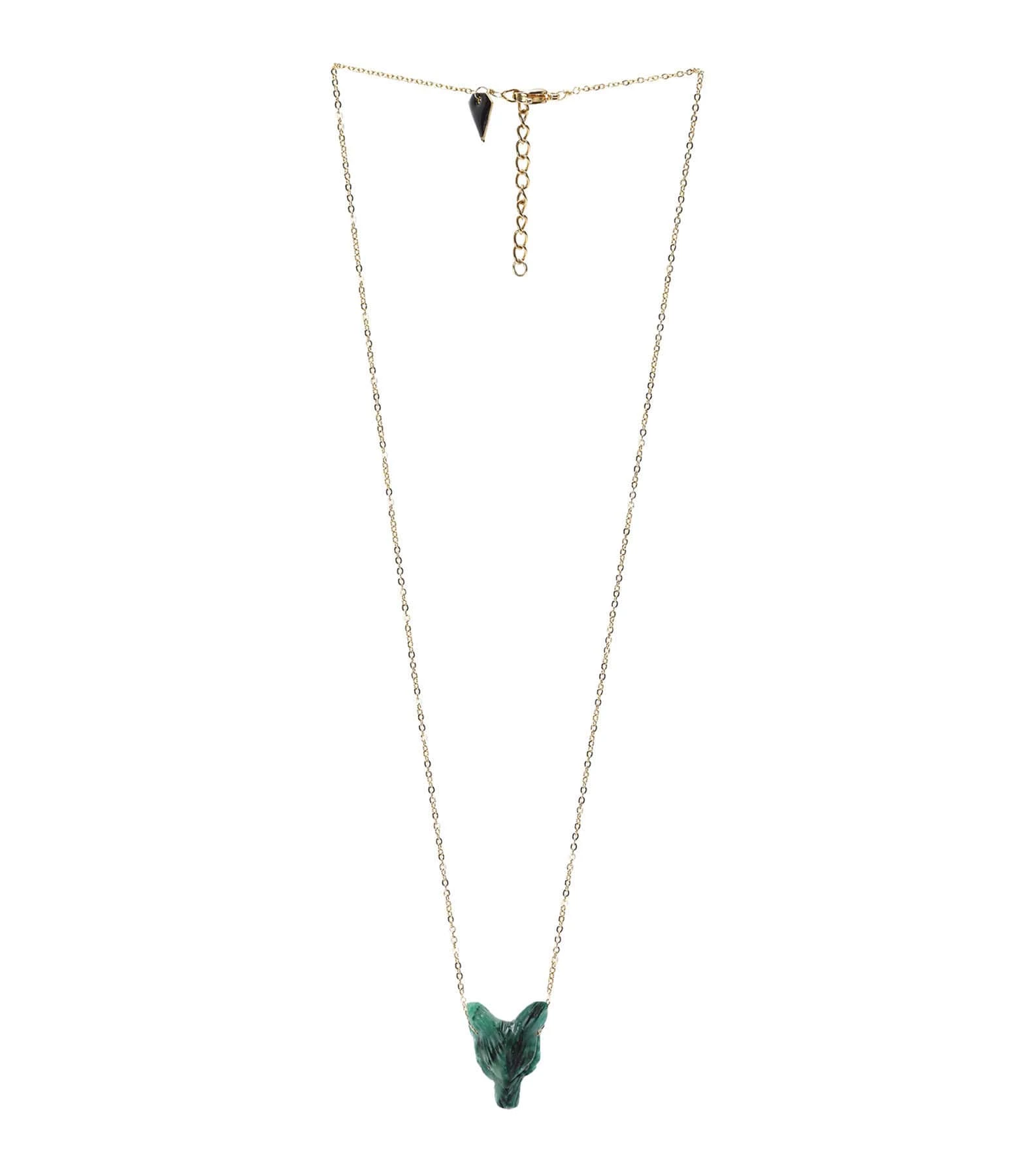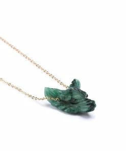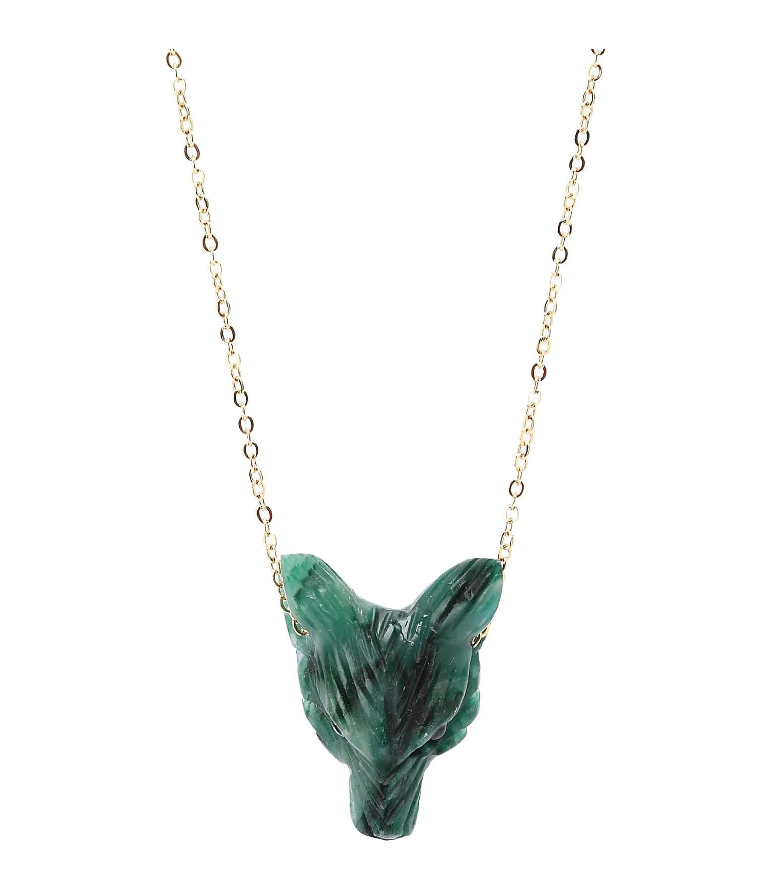 Collier sur chaîne en argent doré à l’or fin, avec pendentif représentant un loup en Jade. Fermoir à ressort avec chaîne de réglage.