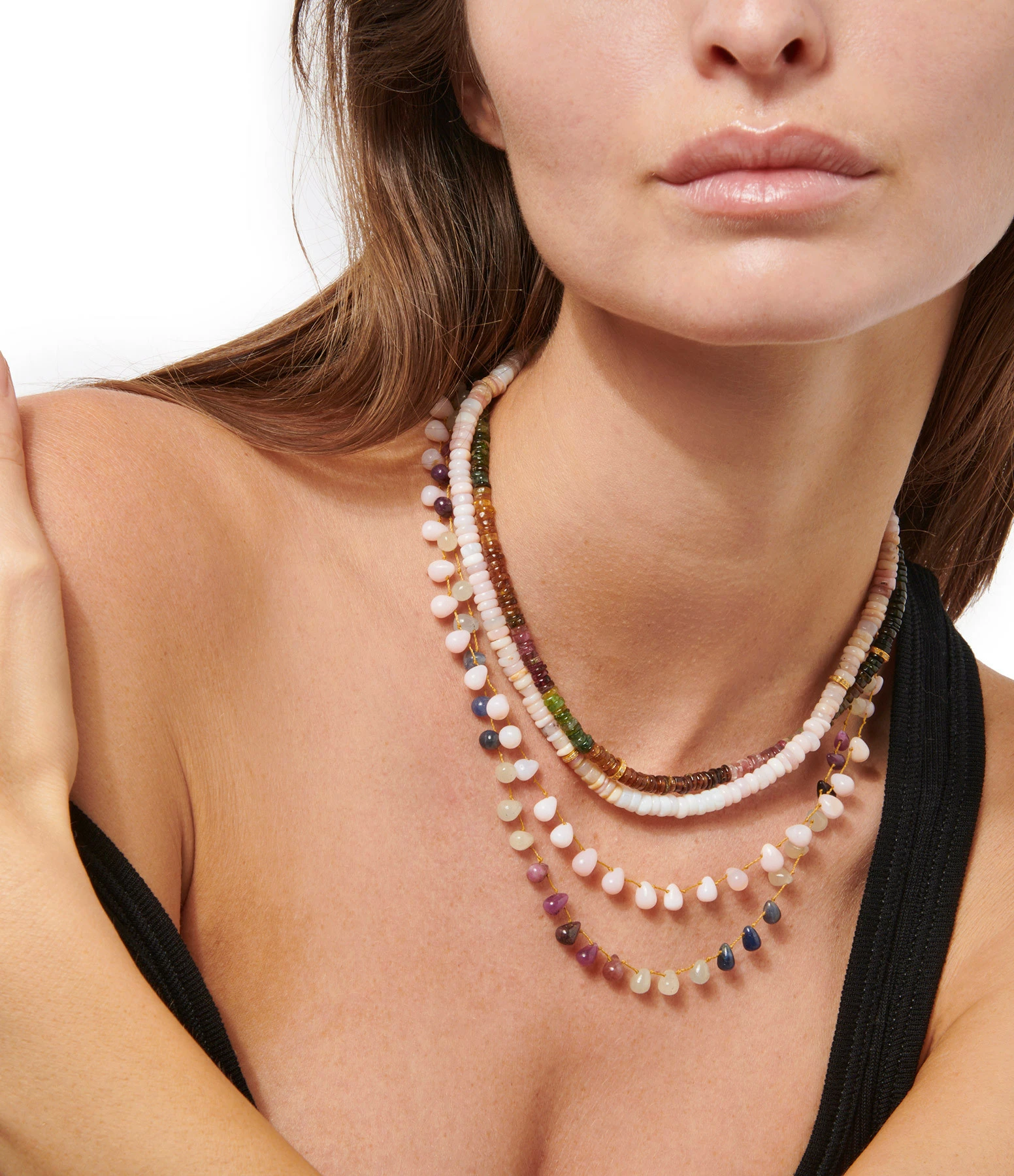 Collier en opale sur chaîne en argent plaqué or. Fermoir à ressort avec chaînette de réglage.