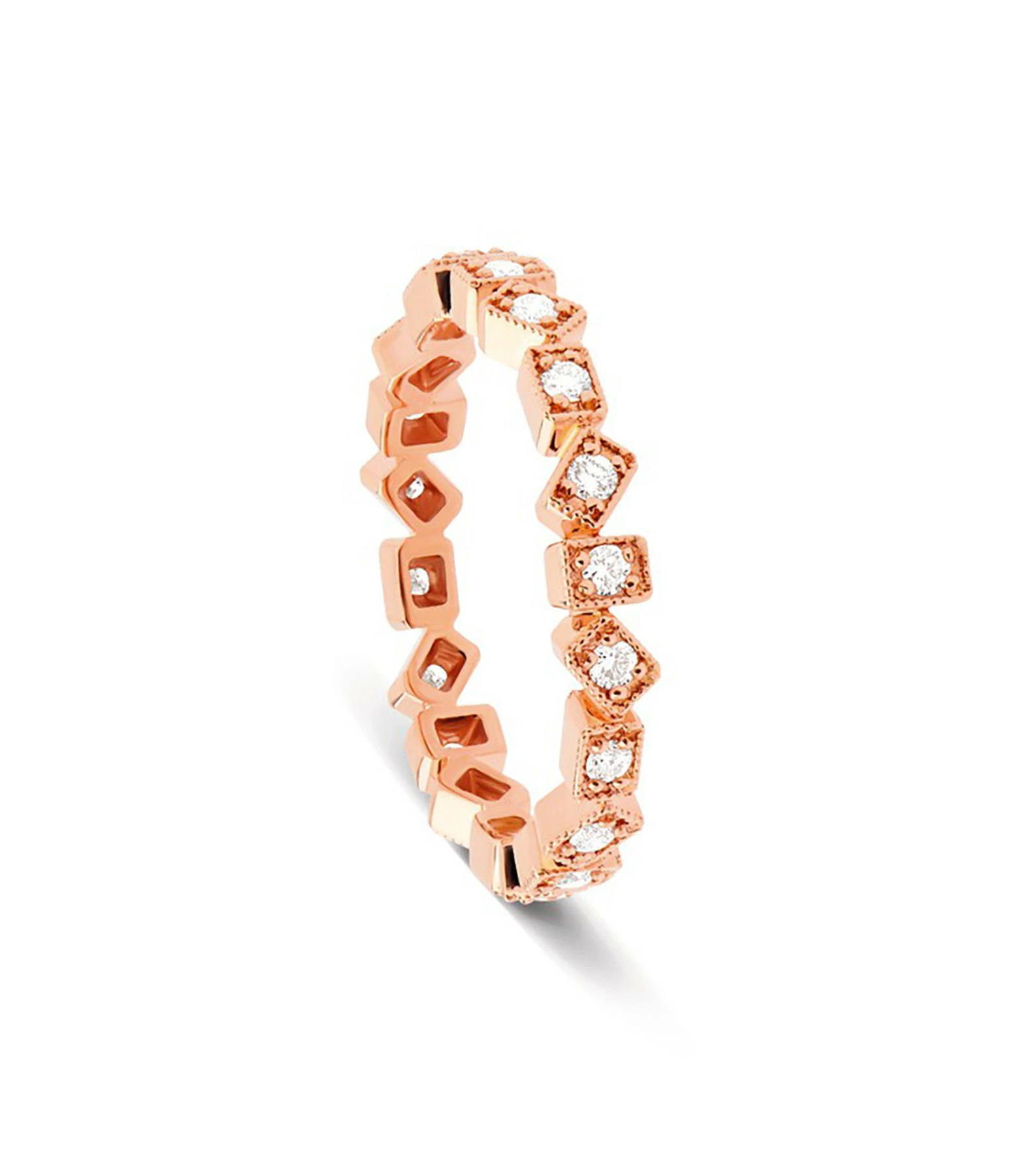 Alliance en or blanc sertie de diamants. Motifs en forme de rectangles.