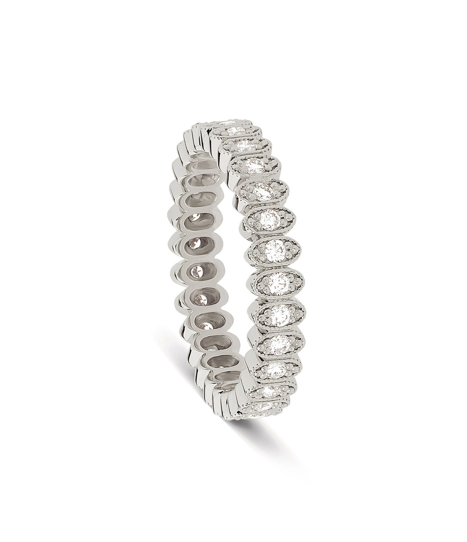 Alliance en or blanc sertie de diamants.