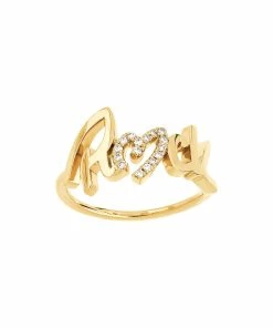 Bague en or jaune avec inscription “Rock” sertie de diamants ronds sur le “O”.